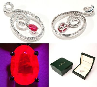 品質コメント:石目刻印がないため正確な重量は分かりませんが、サイズから想定して約1ct前後。僅かにピンク味を帯びた鮮やかなレッドカラー。内部から表面近くにかけて天然の内包物がルーペで確認できますが、輝きには影響がない程度で、テリ・輝きの良い上質なものがセレクトされています。
