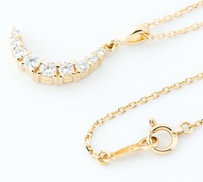 特徴 三日月をモチーフにしたミキモトのペンダント ネックレス。選りすぐりのダイヤモンドを中央に向かってサイズアップさせることで、滑らかなラインを作り出しています。ゆらゆらと揺れる度、強く放たれるファイア(虹色の輝き)。シンプルながら、ミキモトの品格が感じられる上品でエレガントなジュエリーです。