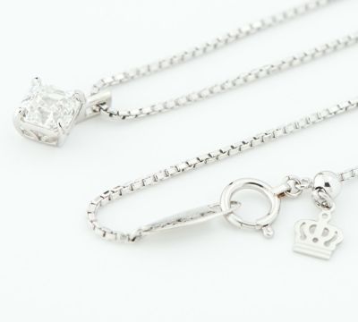 オランダ・アムステルダムでアイザック・ジョセフ・アッシャーが創設し、世界でただひとつ許された「ロイヤル」の称号を持つROYAL ASSCHER(ロイヤル・アッシャー)。独自のアッシャーカットを改良し、74面に増やしたカットが生み出す透明感のある煌めきを、1.00ctの広い場面一杯に感じる贅沢なペンダント・ネックレスです。ダイヤモンドと一口に言っても、それぞれのグレードやカットにより輝きに個性があり、オーソドックスなラウンドブリリアントカットとは違った魅力に引き込まれます。シーンを選ばず楽しむことのできる、シンプルで洗練されたジュエリーです。