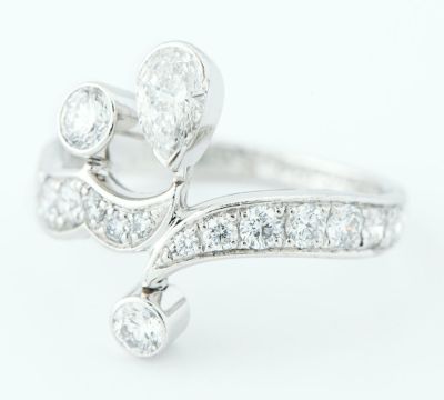 特徴 人気シリーズ、マジックガーデンオブピアジェのリング。ペアシェイプとラウンドブリリアントカットの上質なダイヤモンドが弾むようにセッティングされ優しく輝きます。アームには波を描いたようなデザインにダイヤモンドが美しく並び、動くたび繊細に輝きます。シンプルで洗練されたデザインが魅力的。存在感のあるジュエリーです。