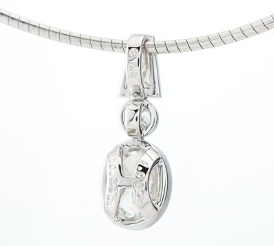 オーバルブリリアントカット、1.06ctの大粒ダイヤモンドをセットしたミキモトのペンダント・ネックレス。広い場面から放たれるクリアな煌めきは、実際のサイズ以上の存在感を放っています。上部には、ラウンドブリリアントとテーパードカットダイヤモンドを組み合わせ、留め爪を使わずすっきりとしたモダンなデザインに仕上げています。ネックレスは、肌馴染みのよい滑らかなオメガチェーンをセレクト。上質な素材こそ、シンプルに。ラグジュアリー感漂う、エレガントなジュエリーです。