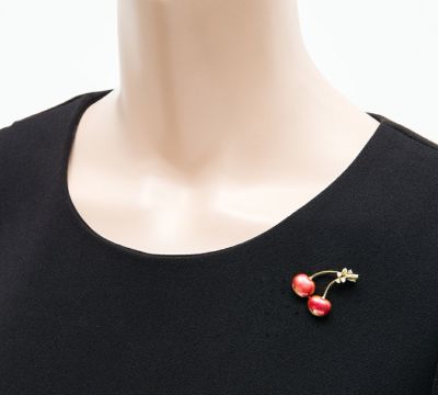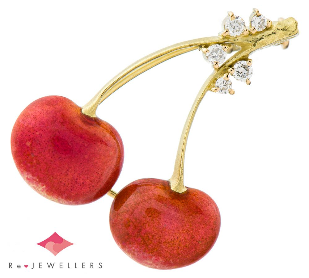 中嶋 邦夫 ニックスファクトリー エマイユ チェリー ダイヤモンド計0.14ct 18金イエローゴールド ブローチ【中古】(2200000453303)