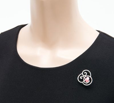 1.96ctの個性的なコンクパールをセットしたBel eclat(ベルエクラ)のブローチ兼ペンダントトップ。模様のようにも見える濃いピンクと白が混ざり合った独特の色合いが最大の特徴です。装飾のダイヤモンドは、三つの螺旋を合わせた独創的なデザイン。バチカンは開閉式となっており、通す場所も自由に選ぶことができます。1万個に一粒とも言われる稀少なコンクパールを使用したオリジナリティ溢れるジュエリーです。