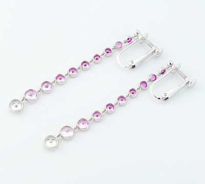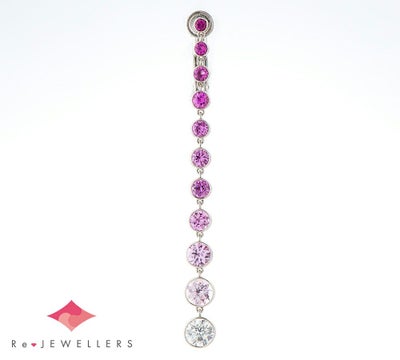 ため息がでるほどに美しい、ベゼルセッティングした計1.904/1.835ctのピンクサファイアと大粒ダイヤモンドを連ねた上質なイヤリング。濃く鮮やかなピンクサファイアから、色をグラデーションさせながら徐々にサイズアップし、最後に0.519/0.505ctの上質なダイヤモンドをセットした何とも贅沢なデザイン。グラデーションに対する色のこだわりは数々のギメル作品を見れば一目瞭然ですが、一切の妥協を許さない姿勢にただただ圧倒されるばかり。ゆらゆらと大きく揺れ眩い煌めきを放つ、優雅でラグジュアリーなジュエリーです。
