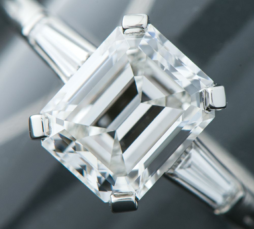 2ctアップのエメラルドカットダイヤモンドをセットしたティファニーのリング。驚くことにVVS1と透明度も非常に高く、Eカラー、2.02ctと申し分のない稀少なものがセレクトされています。澄み切ったダイヤモンドの美しさと、傾ける度放たれる眩い煌めきに目が離せません。なかなか出会うことのできない、上質な素材を活かしたハイジュエリーです。※三越刻印有