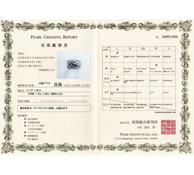 なし、鑑別書(真珠総合研究所発行) ※鑑別書カバーに汚れ有 |
