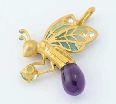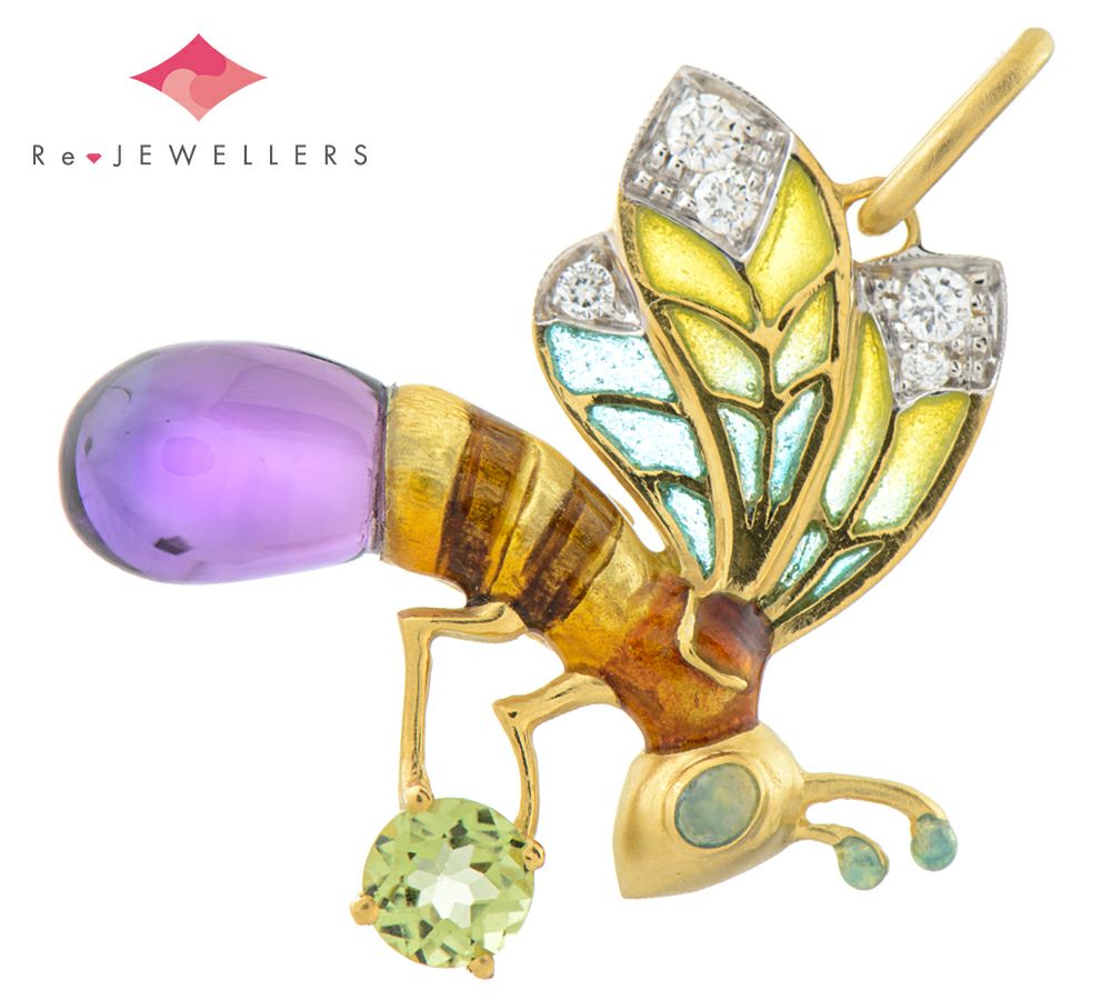 マリエラ エナメル(七宝) 蜂モチーフ ペリドット アメシスト ダイヤモンド 18金イエローゴールド ペンダントトップ【中古】(2200000484406)