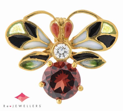 特徴 「バルセロナの至宝」と謳われるスペインのジュエリーブランド MASRIERA(マリエラ)。マリエラ社のジュエリーは、マリエラ七宝という半透明の七宝技術を用い、ほぼすべてハンドメイドで製作されています。深紅のガーネットが放つ、深く鮮やかな煌めきが目を引く蜂モチーフのペンダントトップ。エナメルの羽根に個性が光るユニークなジュエリーです。