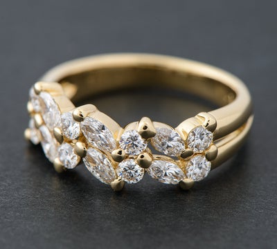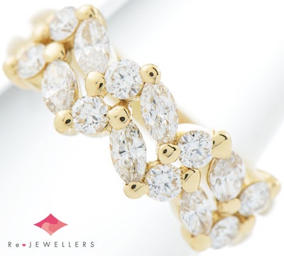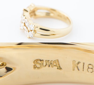 特徴 「受け継ぐ人に喜ばれること」というコンセプトで質の高いジュエリーを生み出しているSUWA。マーキスブリリアントダイヤモンドが美しく並んだ気品溢れるリングです。18金イエローゴールドと、ダイヤモンドの輝きが華やかな印象をあたえます。ラウンドブリリアントダイヤモンドとのシンプルな組み合わせですが、空間を意識したオリジナリティのあるデザインが魅力的。末永くご愛用いただけるエレガントなジュエリーです。
