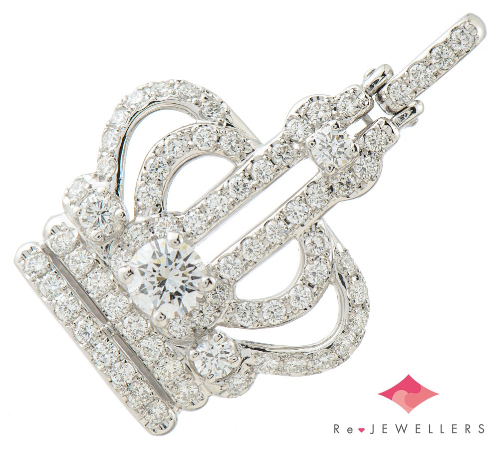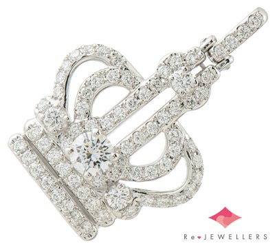 オランダ・アムステルダムでアイザック・ジョセフ・アッシャーが創設し、世界でただひとつ許された「ロイヤル」の称号を持つROYAL ASSCHER(ロイヤル・アッシャー)。ブランドを象徴するクラウン(王冠)をモチーフにしたラグジュアリー感のあるペンダントトップです。中央には卓越したカットによって眩い煌めきを放つ、0.57ctの上質なダイヤモンドをセット。メレダイヤモンドも合わせトータル2ctを超える、贅沢で華やかなジュエリーです。