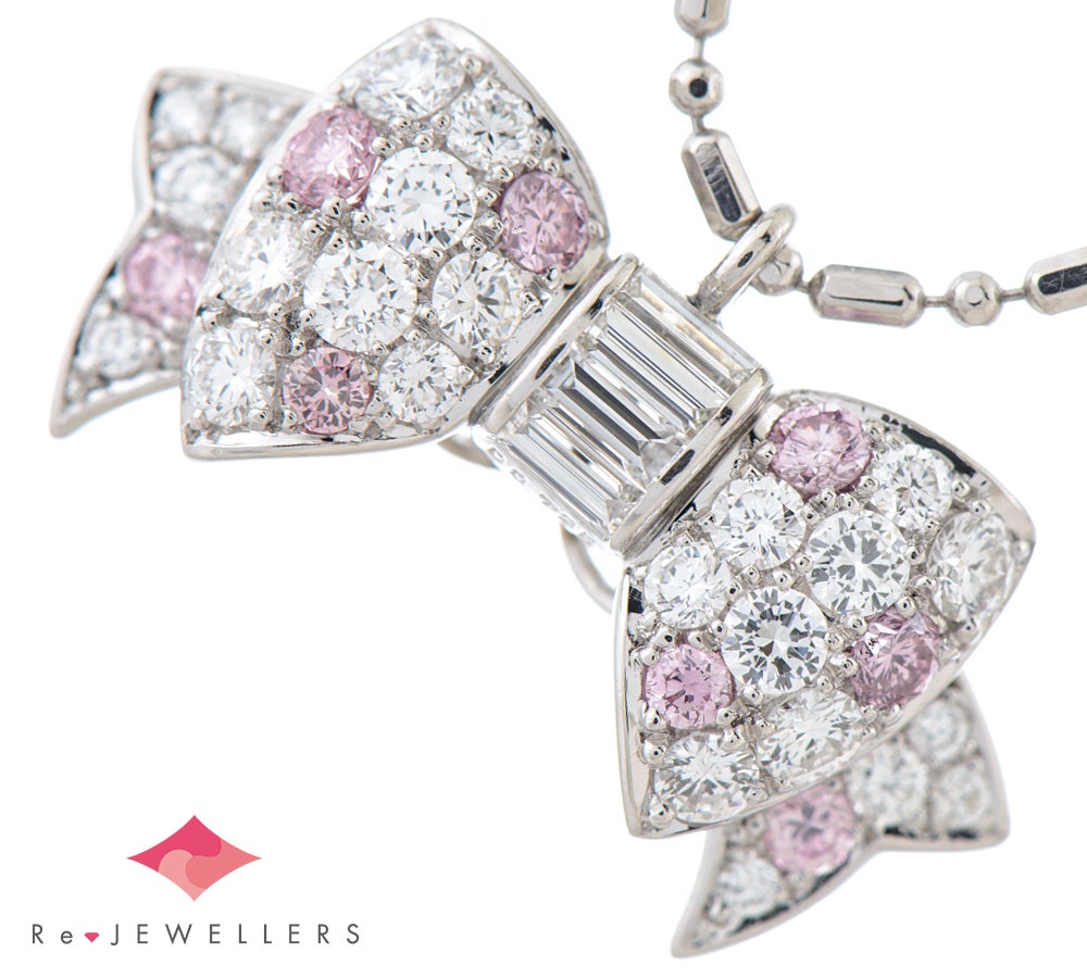 ギメル リボン ナチュラル(天然)ピンク ダイヤモンド計0.225ct ダイヤモンド 計0.735ct プラチナ950 ペンダント・ネックレス【中古】(2200000488428)