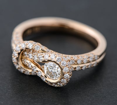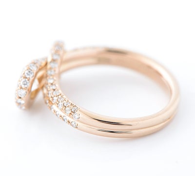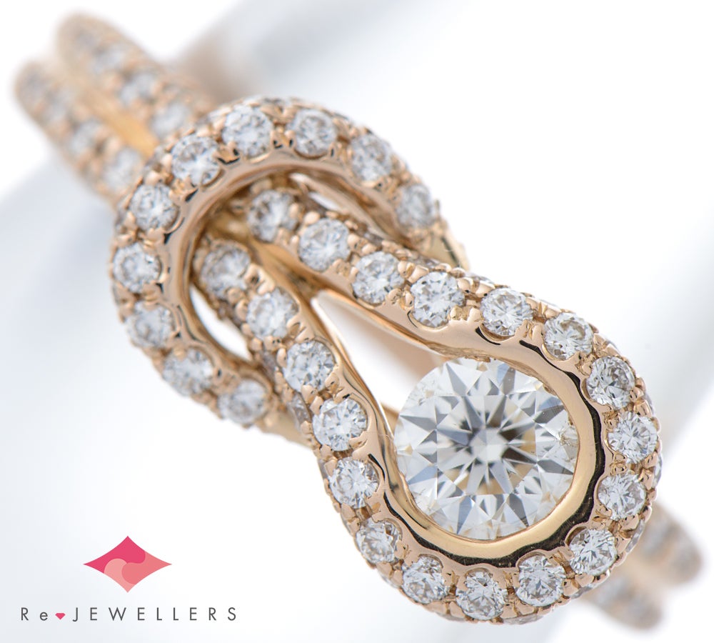 上質なダイヤモンド0.32ctをセットしたフォーエバーマークの人気シリーズ エンコルディアのリングです。古代ギリシャより絆やパワーの象徴として伝わる「ヘラクレスノット」とい、外れにくい結び方をモチーフとしたデザイン。取り巻きのダイヤモンドは計0.63ctをあしらい、ピンクゴールドの艶やかな輝きと調和し、華やかな印象です。「永遠に固く結ばれた絆」を象徴する結び目に、フォーエバーマークが誇るダイヤモンドが眩いほどの輝きを放ちます。