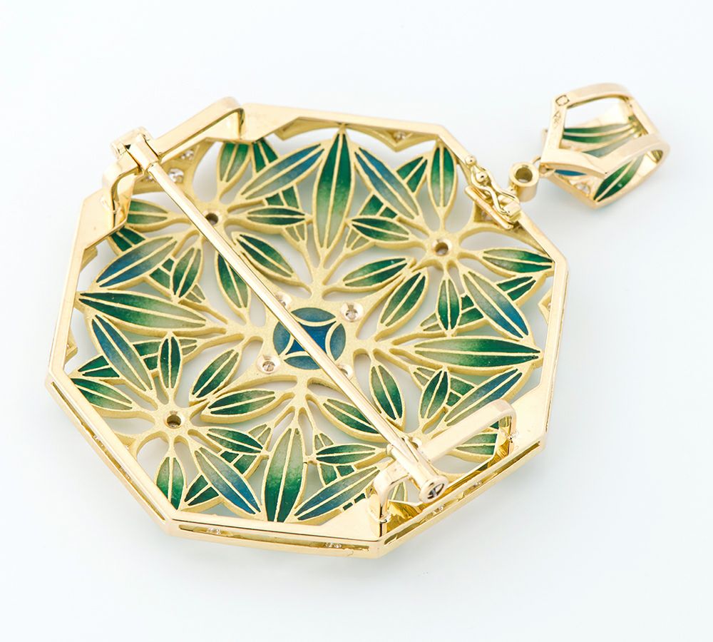 他の画像を見る 中嶋 邦夫 ニックスファクトリー ボタニカルモチーフ エマイユ ダイヤモンド計0.83ct 18金イエローゴールド ブローチ兼ペンダントトップ【中古】(2200000428752) 価格 ¥ 500,000 税込 カートに入れる お気に入りに登録する
