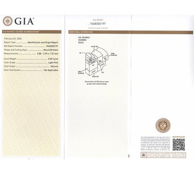 重さ:0.09ct カラー:LIGHT PINK サイズ:2.88×2.93×1.75mm 形状:ラウンドブリリアントカット