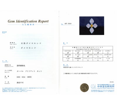 鑑別書(中央宝石研究所発行) |