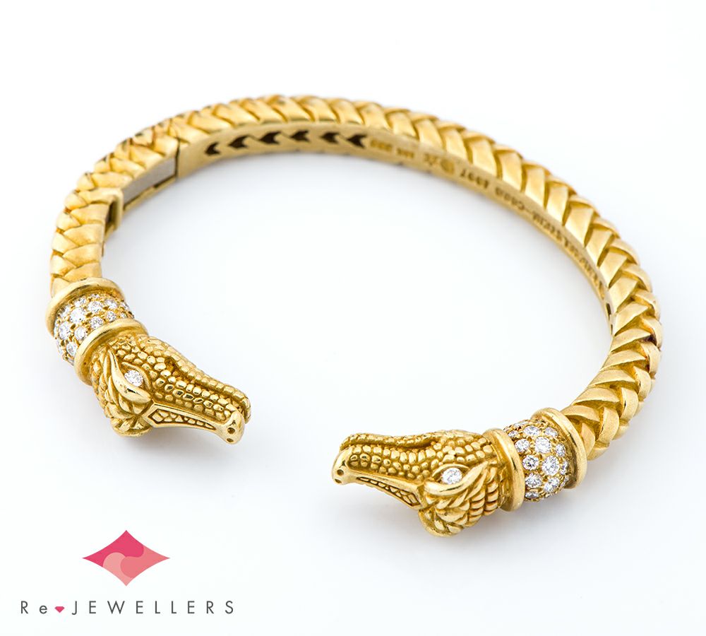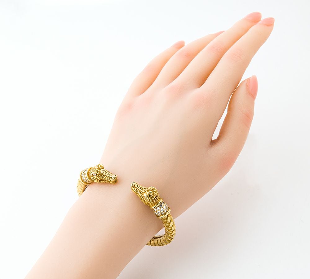 他の画像を見る キーゼルシュタイン コード Kieselstein-Cord ワニモチーフ トルクスモール ダイヤモンド 18金イエローゴールド ブレスレット【中古】(2200000475855) 価格 ¥ 1,800,000 税込 カートに入れる お気に入りに登録する