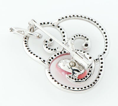 1.96ctの個性的なコンクパールをセットしたBel eclat(ベルエクラ)のブローチ兼ペンダントトップ。模様のようにも見える濃いピンクと白が混ざり合った独特の色合いが最大の特徴です。装飾のダイヤモンドは、三つの螺旋を合わせた独創的なデザイン。バチカンは開閉式となっており、通す場所も自由に選ぶことができます。1万個に一粒とも言われる稀少なコンクパールを使用したオリジナリティ溢れるジュエリーです。