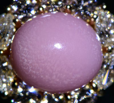 品質コメント:均一な乳桃色。光源下で特有の火焔模様を確認することができる、大変テリの良い高品質なものがセレクトされています。