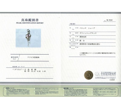 鑑別書(中央宝石研究所発行) |