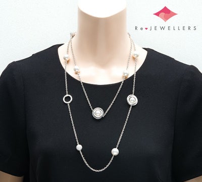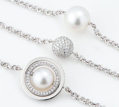 「命を育む水をたたえた惑星―地球」をテーマにミキモトの一流デザイナー達が豊かな想像力を発揮した独創的なパールジュエリーコレクション、A World of Creativity のステーション ネックレスです。惑星をイメージした回転式のモチーフやパヴェダイヤモンドのボールモチーフ、美しい南洋真珠がセレクトされています。クラスプの位置を変えて長さを変えたり、2重巻きにしたりと様々な表情を楽しむことができます。ミキモトの技術と品質が融合したハイジュエリーです。参考上代は税込4,968,000円(2019年3月時点)です。