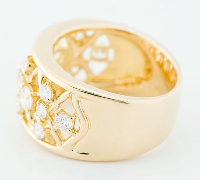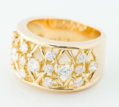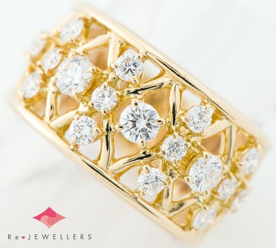 特徴 真珠だけでなく、日本におけるダイヤモンドの歴史を築き上げたことでも有名なミキモト。厳選した上質なダイヤモンド計0.97ctを贅沢に使用したリングです。イエローゴールドの格子状の透かしに、サイズの異なるダイヤモンドをセット。ボリューム感のある幅広のアームが、存在感を放ちます。あらゆるシーンで活躍する、華やかなジュエリーです。