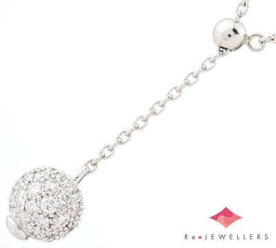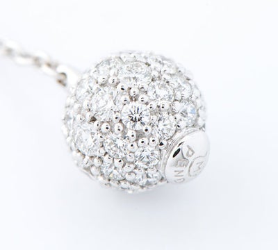 特徴 ダイヤモンドをボール状にパヴェセッティングしたミキモトのペンダント・ネックレス。アジャスターを使いY字にして楽しむことも可能です。曲線が強くセッティングが難しい形ですが、一石一石滑らかに隙間なく敷き詰められています。どの角度から見ても同じように眩い煌めきを放つ、厳選されたダイヤモンドの輝き。滑らかな手触りに職人の技術の高さがうかがえる洗練されたジュエリーです。
