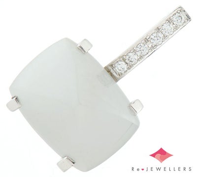 僅かに緑を帯びた白系の色合いが珍しいジェイダイトをセットしたペンダント・ネックレス。柔らかな長方形を対角線でカットした特殊なカッティングと、縦長のダイヤモンドのバチカンが特徴的です。華奢なチェーン、程よいボリューム感があるものどちらとも相性が良く、世代を問わず楽しむことのできる、翡翠の新しい魅力が詰まったジュエリーです。