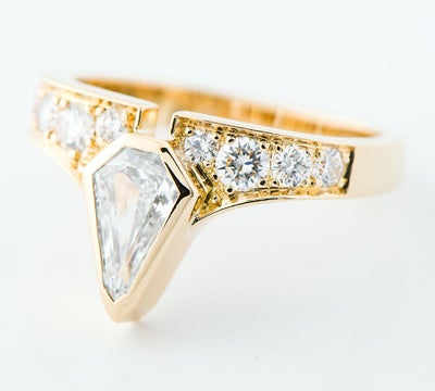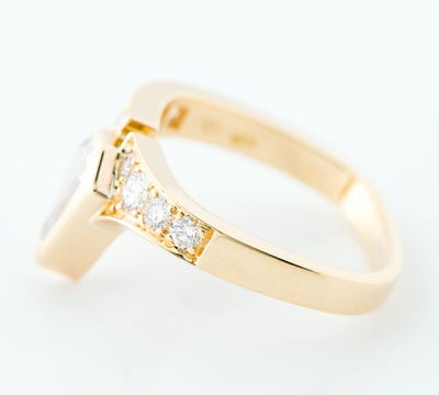 特徴 真珠だけでなく、日本におけるダイヤモンドの歴史を築き上げたことでも有名なミキモト。五角形の個性的なカットが施された0.52ctのダイヤモンドをセットしたリングです。スクエアを基調としたアームとシンプルな装飾、洗練されたユニセックスなデザインが目を引きます。0.5ctアップダイヤモンドが存在感を放つ個性派ジュエリーです。