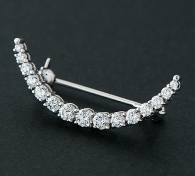 特徴 三日月をモチーフにしたミキモトのブローチ。選りすぐりのダイヤモンドを中央に向かってサイズアップさせることで滑らかなラインを作り出しています。シンプルながら、ミキモトの品格が感じられる上品でエレガントなジュエリーです。