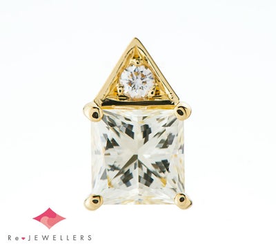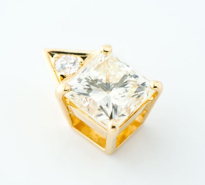 真珠だけでなく、日本におけるダイヤモンドの歴史を築き上げたことでも有名なミキモト。肉眼でもわかる抜群の透明度を持ったプリンセスカット、1.17ctのイエローダイヤモンドをセットしたペンダントトップです。カットも素晴らしく、クリアな煌めきを放つ柔らかなイエローカラーに引き込まれます。上質なものこそ、シンプルに。トライアングルの形をしたバチカンが、シャープな印象を与える洗練されたジュエリーです。