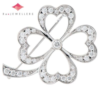 特徴 幸福の象徴であるクローバーをモチーフにしたミキモトのブローチ。クローバーの葉一枚一枚がハートのようにも見えるボリューム感のあるデザインです。太陽の光を浴びた葉が煌めいているかのように、上質なダイヤモンドが眩い輝きを放ちます。年齢を問わず楽しむことのできる、使い勝手の良いジュエリーです。