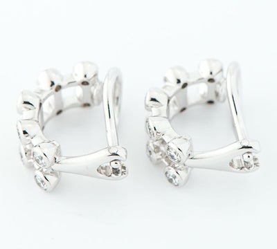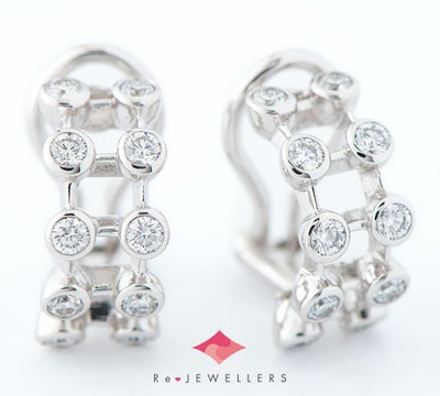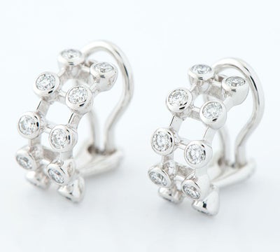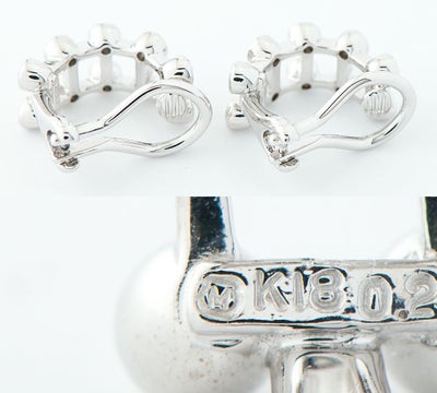 特徴 フープのような半円の丸みが耳元を美しくみせてくれるミキモトのイヤリング。ベゼルセッティングのダイヤモンドが並んだモダンなデザインとホワイトゴールドとの組み合わせが、すっきりとした印象を与えます。シンプルながら、存在感のある飽きのこないジュエリーです。