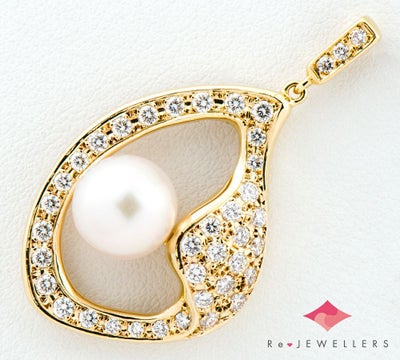 品質の良いダイヤモンドを柔らかなフォルムに敷き詰め、アコヤ真珠の美しさを表現したペンダントトップ。女性らしさを引き出してくれる、安心品質のミキモトジュエリーです。
