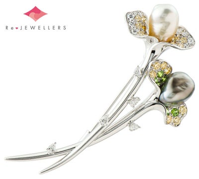 特徴 グラデーションカラーダイヤモンドの煌めきをまとう、柔らかなブラックとホワイトからイエローへ次第に変化するカラーとの対比が目を引くミキモトのフラワーモチーフブローチ。バロックパールの形を活かした個性豊かな表現が印象的です。柔らかなフォルムに滑らかにパヴェセッティングした、色鮮やかなデマントイドガーネットやイエローダイヤモンドが目を引きます。しっかりとボリューム感のあるホワイトゴールドの茎には、良質なペアシェイプダイヤモンドを散りばめた贅沢なデザイン。存在感を放つオリジナリティ溢れるジュエリーです。