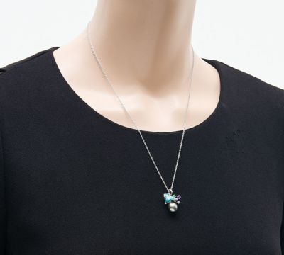 一世紀を越え真珠の美を追い求めてきたミキモト。個性的な黒蝶真珠の形を活かした美しいペンダント・ネックレスです。エナメルで表現した葉は、グリーンのグラデーションが美しく細かな線もしっかりと表現。果実に見立てたマルチストーンの鮮やかなグリーンや紫が、黒蝶真珠のシックなブラックを引き立てます。
