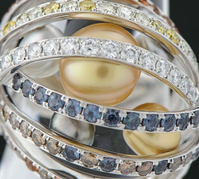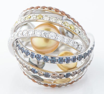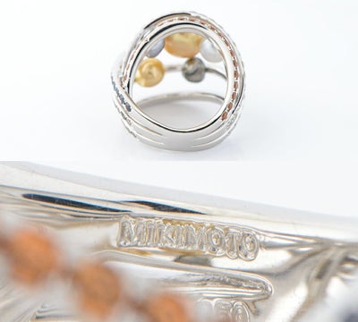 マルチストーンを贅沢にあしらい、色彩と形の異なるパールを巧みに組み合わせた華麗なミキモトのリング。まるで光の調べが舞うような、遊び心とエレガンスが共存するデザインです。アームの裏側にはパールがセッティングされ、その全体像が見え隠れする美学を感じさせます。中央のアレキサンドライトが、寒色系の光のもとではブルーグリーンに、暖色系の光では深みのある赤紫へと表情を変え、身に着ける人の動きとともに幻想的な輝きを描き出します。ひとつのリングに、時間や光、その瞬間の感情までも映し出す特別な魅力が息づいています。