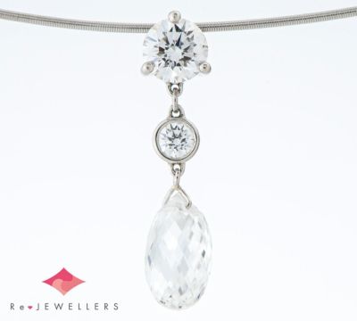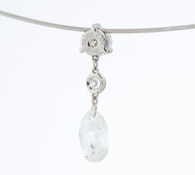 1.022ctのブリオレットカットダイヤモンドをセットしたギメルのペンダント・ネックレス。幾つものファセット(カット面)が光を反射して煌めく姿に、目を奪われます。透明感のある、繊細な輝きが魅力的です。三本爪とベゼルセッティングのラウンドブリリアントダイヤモンドでシンプルに装飾し、チェーンは華奢で細いオメガチェーンをセレクト。素材の素晴らしさを最大限に活かした、上質なジュエリーです。