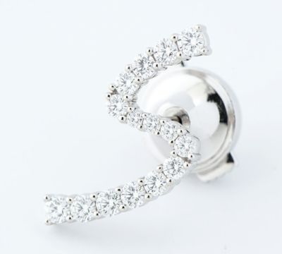 特徴 兵庫・芦屋発のジュエリーブランド ギメル。ポップな字体が目を引くアルファベットのSをモチーフにしたピンブローチです。厳選された計0.479ctのダイヤモンドが、眩い煌めきを放ちます。