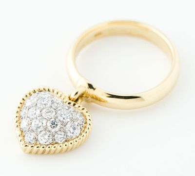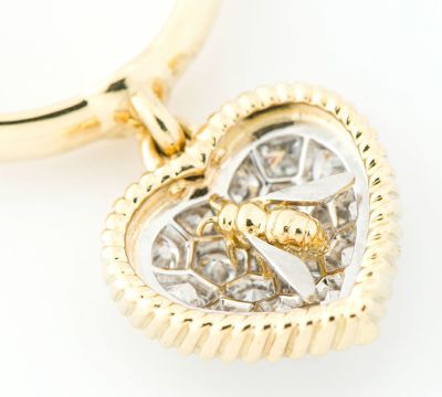 特徴 アジュール(裏取り)のハニカム(蜂の巣)細工の上に蜂が羽を休めている、ギメルの代表的なモチーフのリングです。イエローゴールドの装飾がハートを縁取り、アーチを描くほどに滑らかにパヴェセッティングされたダイヤモンドが、眩い煌めきを放ちます。ゆらゆらと揺れる動きのあるデザインもポイントに。確かな技術が光る、洗練された上質ジュエリーです。
