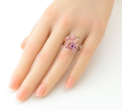 特徴 フランスの老舗ジュエラー、メレリオ・ディ・メレー(MELLERIO dits MELLER) 。ブランドの象徴的な花である野バラを立体的に表現したモンテローザコレクションのリングです。イタリアマルゲリータ王妃に贈られた野ばらと月桂樹のティアラから着想を得ています。パープルの色合いが強いピンクサファイアと、ピンクゴールドにフェミニンな雰囲気が漂う、格調高い上品なジュエリーです。