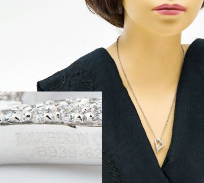 ブシュロン ハート パヴェ ダイヤモンド 18金ホワイトゴールド ペンダント・ネックレス【中古】(2200000460509)