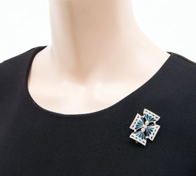 エマイユ技法を用いて独特の世界観を魅せる中嶋邦夫 ニックスファクトリーのペンダント ネックレス。エレガントで上品なデザインと、ブルーのエナメルの繊細なグラデーションがマッチしています。中央の3石のダイヤモンドは計0.51ctと存在感があり、装飾部分にあしらわれたメレダイヤモンドが華やかさを演出。トップは取り外して、ブローチとして使うこともできます。気品漂う、芸術的なジュエリーです。