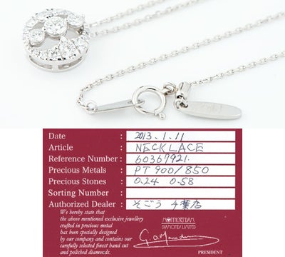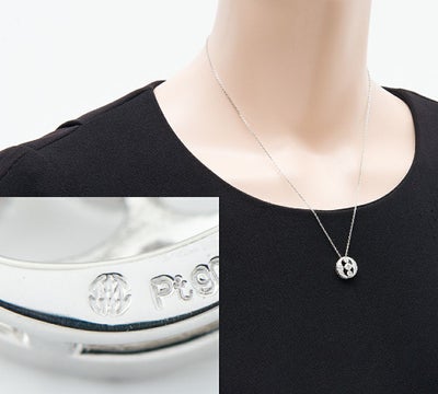 ペンダントサイズ:縦約12.1mm 横約12.1mm ネックレス長さ:全長約45.0cm チェーン取り外し:可 ※長さ調整スライドアジャスター付 ※チェーンの素材はプラチナ850です。
