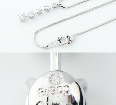 ペンダントサイズ:縦約26.0mm 横約3.8mm ネックレス長さ:全長約45.0cm チェーン取り外し:不可 ※長さ調整スライドアジャスター付 ※ネックレスチェーンにはブランド刻印がないため、社外品の可能性があります。 ※チェーンの素材は、プラチナ850です。