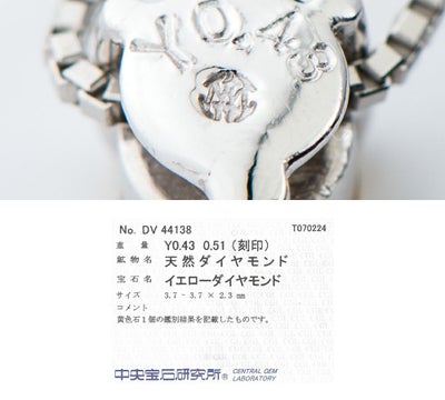 重さ:0.41ct 形状:ハートブリリアントカット カラー:ほぼ無色系 クラリティ:VSクラス コメント:※こちらの石目のみソーティングに記載がありません。