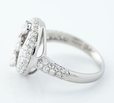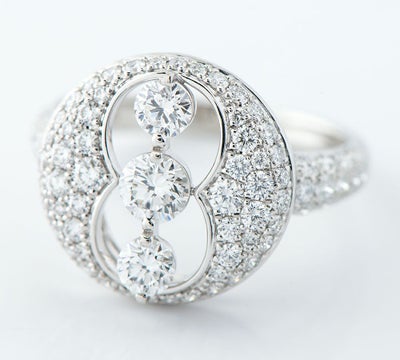 「原石に命を与える」というカッティングポリシーで知られる英国最古の宝飾ブランドMONNICKENDAM(モニッケンダム)。満ち欠けする月の表情を表現したムーンレイズ(Moon Rays) コレクションのリングです。厳選された中央の0.30ctのダイヤモンド輝きもさることながら、一石一石が存在感のある眩い煌めきを放ちます。華やかでボリューム感のあるジュエリーです。