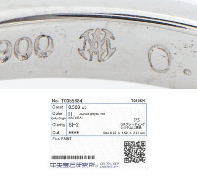重さ:0.508ct カラー:H クラリティ:SI2 研磨状態:VERYGOOD 対称性:GOOD サイズ:6.95×4.50×2.81mm 蛍光性:FAINT 形状:ペアブリリアントカット