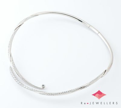 斬新で洗練されたデザインと、ダイヤモンドの品質には定評があり、国内・国外ともに数々の賞を受賞している日本を代表するジュエリーデザイナー・小寺智子のネックレスです。ダイヤモンドの眩い煌めきと、強いファイア(虹色の輝き)は、まるで首もとに流れ星を纏ったかのような存在感。螺旋状に作られる滑らかなラインから、1石の美しいダイヤモンドが先端に煌めくエレガントでアシンメトリーなデザインは世界でも高く評価されている小寺智子の独特の世界観。ダイヤモンドの魅力を余すことなくご堪能いただける、華やかなハイジュエリーです。