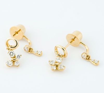 特徴 国内・国外ともに数々の賞を受賞している日本を代表するジュエリーデザイナー・小寺智子。春が動き出すシリーズのピアスです。軽やかに舞う蝶が、季節の訪れを感じさせます。キャッチ側にセットされたダイヤモンドは、耳の側面に装着することで空間が生まれ、まるで石が浮いているかのようなデザインに。フェミニンな印象を与える繊細なジュエリーです。