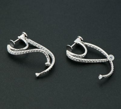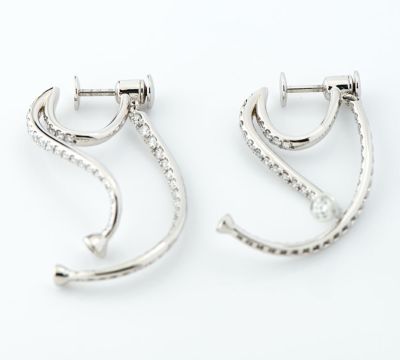 特徴 国内・国外ともに数々の賞を受賞している日本を代表するジュエリーデザイナー・小寺智子。洗練された美しい曲線と、空間と余白を活かした大胆なデザインを組み合わせた大振りなイヤリング。ポイントとなる耳の後ろ側にあるパーツが、ゆらゆらと優雅に揺れます。厳選したダイヤモンドの輝きが美しいラグジュアリーなジュエリーです。